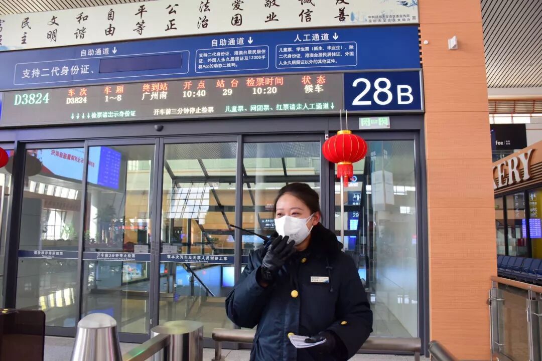 和周健伟一样,身在昆明南站的女儿周若伊每天也是忙得不可开交。虽然今年春节期间的客流量比往年小,可周若伊脚下的步伐并未减慢。进站口和出站口是与旅客接触最多的区域,她每天一到工作岗位,便一手握着对讲机,一手拎着喇叭,向旅客宣传疫情防控知识。